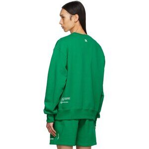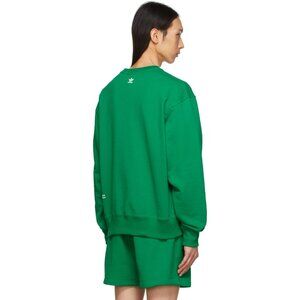 Long sleeve French terry sweatshirt in green featuring logos and text bonded in white. Rib knit crewneck collar, cuffs, and hem. Part of the adidas x Humanrace by Pharrell Williams collection.