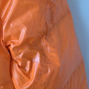 Selling NWT STELLA MCCARTNEY X ADIDAS | Stellasport Supora Bomber Jacket Shiny Orange Sz S. Some marks on the back as shown, probably will go away with a first wash.