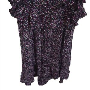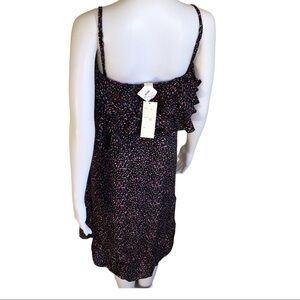 NWT STUDIO SPA Confetti Print Sleeveless Dress W Tiered Ruffle Overlay Black Size Large
