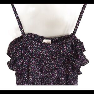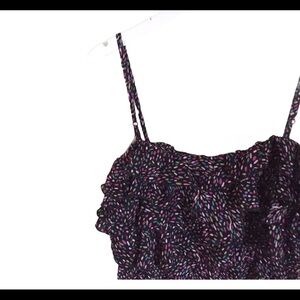 NWT STUDIO SPA Confetti Print Sleeveless Dress W Tiered Ruffle Overlay Black L