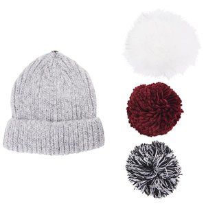 Stay warm without sacrificing style by throwing on this statement-making beanie with changeable poms.