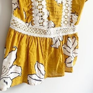 NWT Sadie & Sage Floral Lace Yellow & White Peplum So Sunny Top Size S