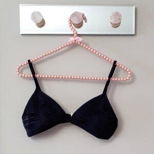 NWT Saha Swimwear black triangle bikini top and bottom set with front binding rows