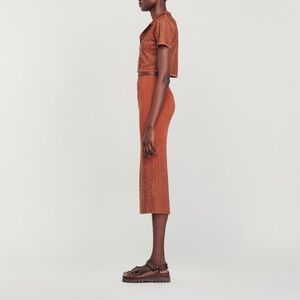 NWT Sandro Rhinestone-Embellished Midi Skirt