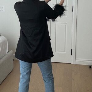 NWT Black Satin Blazer with Feather Cuffs