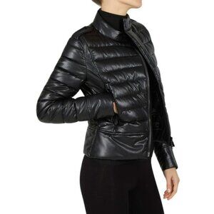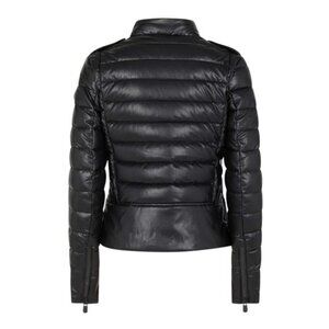 NWT Save The Duck eco leather black moto style quilted puffer jacket, S