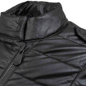 NWT Save The Duck eco leather black moto style quilted puffer jacket