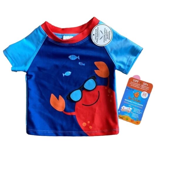 NWT Sea Me Swim Crab UPF 50+ Rashguard Waterproof Reusable Swim Diaper 3…