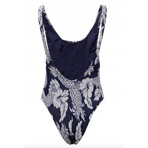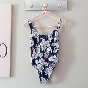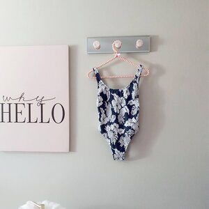 NWT Seafolly Australia blue, white & black tropical floral print one piece swimsuit