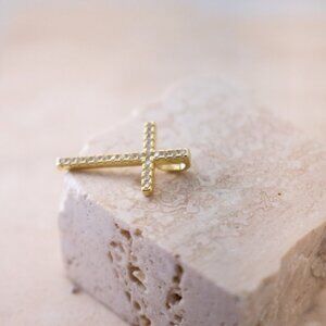 NWT Selena Cross Pendant // 14kt Gold Vermeil + CZ
