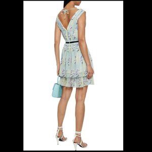 NWT Self-Portrait Floral Lace Chiffon Mini Dress | Mint | US 8 / UK 12