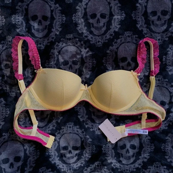Gorgeous yellow & pink bra with adorable lace & bow details