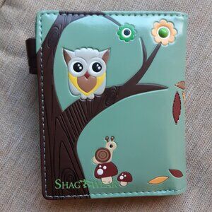 *NEW with sticker and cello packaging! Shagwear Woodland Forest Deer Owl Slim Bifold Wallet Vegan Leather in seafoamy mint green colour