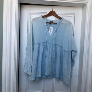 NWT Shannon Passero Women's Small Carley Two Tone Fog Tunic Top Blue Modest