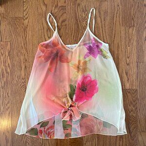 NWT Sheer Floral Multicolour Print Spaghetti Strap Y2K Camisole with Front Tie