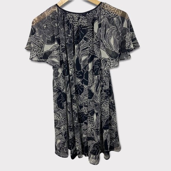 Show Me Your Mumu Black and White Floral Print Mini Dress. Short sleeves. V-neckline that has a tie closure. Flattering relaxed drape silhouette. This is a sample piece so no size tag but see measurements below. Fits like a women's small. Brand new with tags! No flaws.