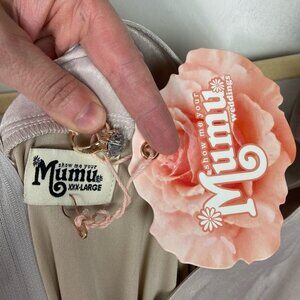Show Me Your Mumu Jenn Maxi Dress in Show Me The Ring Sheen. From Mumu Bridesmaid Wedding collection.Women’s size XXXL. A fitted bodice with a deep neckline is mirrored in the back with a low-v, then flows out to a full, flattering skirt. Silky fabric - 100% Polyester. Lined in bust, unlined skirt, opaque fabric. No slits. Zipper closure in back. Detachable sash included. Brand new with tags! No flaws.