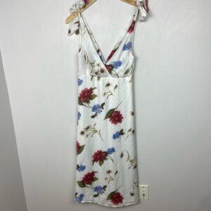 Show Me Your Mumu Silky Arlene Midi Dress Floral Print. Deep v neckline and back. Side zipper closure and adjustable tie straps. Poly. Lined. Brand new with tags! No size as this was a sample piece but measurements indicate a small.