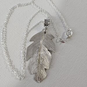 NWT Silverplate pendant feather hand carved and engraved from vintage flatwear.