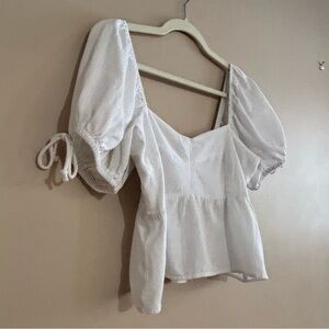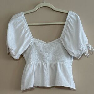 NWT Sim & Sam Sz M Linen Blend Empire Waist Smocked Puff Sleeve Crop Blouse White