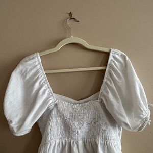 NWT Sim & Sam M Linen Blend Empire Waist Smocked Puff Sleeve Crop Blouse White