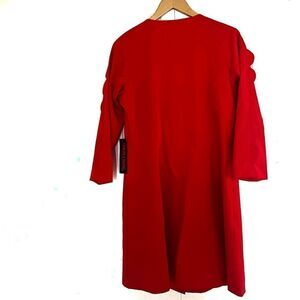 NWT Simon Chang Red Scallop Trim button front dress coat Sz 12