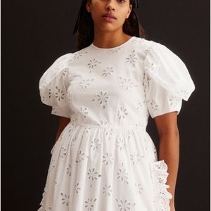 NWT Simone Rocha × H&M Eylet white dress with puff sleeves Cinch Waist