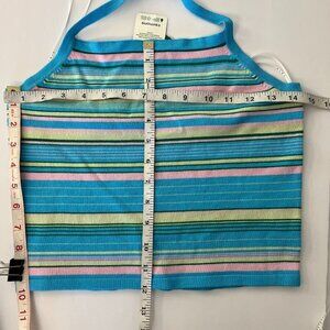 NWT Simons Twik Stripe Halter Crop Top Blue Pink Yellow Green Sz L