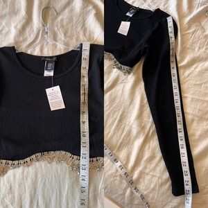 NWT Sincerely Jules Black Beaded Fringe Crop Top S/M