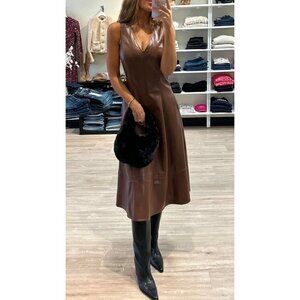 NWT Size 12 - Paige fiorella faux leather midi dress French Press (NWT US$ 329)
