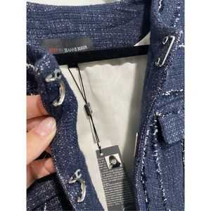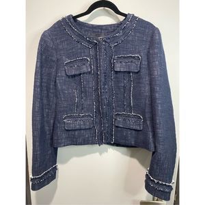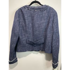 NWT Size 16, Jeanne Beker blue and white distressed cotton/linen blend blazer.