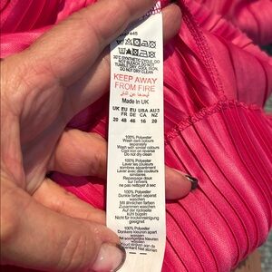 This is NWT a ladies size 16 dress from BooHoo in a beautiful vibrant pink. This is definitely a TTS 16 and due to the dolman sleeve idea and fabric I could not fill it out correctly as I’m typically a smaller size. I think if you were normally a 16 this would fit beautifully and hug you in all the right ways accentuating all your best parts… unfortunately for me it did not do that..