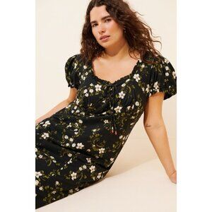 NWT Size 1X - Anthropologie Linen Blend smocked Puff-Sleeve Midi Dress ( US$178)