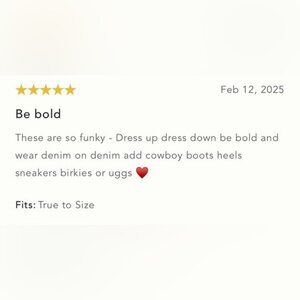 So cute and comfortable!!! Have worn these a few times already! With boots for a concert and with Birkenstocks and tank to a brewery! Love love them!!! So happy I took the plunge!!!