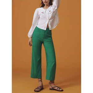 NWT Size 27P -The Colette Linen Blend Crop Wide-Leg Pants in Green (NWT USD 138)