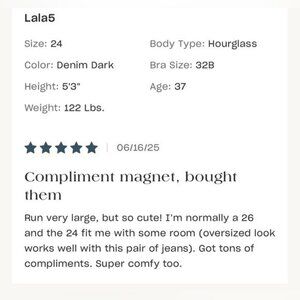 Love love love. They’re definitely on the bigger side. I’m usually 28/29 and the 27 fits perfect. Lovely soft denim. Super comfy with a great flare.