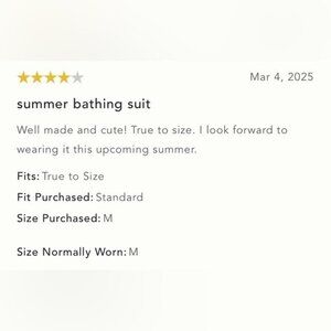 Well made and cute! True to size. I look forward to wearing it this upcoming summer.