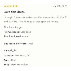 Love this little dress. I sized down- it was loose on the sides but I have a small chest. It’s nice and airy for the summer!