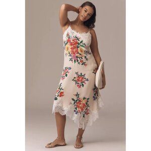 NWT Size L -Anthropologie Sleeveless V-Neck Lace Slip Midi Dress (NWT US$ 178)