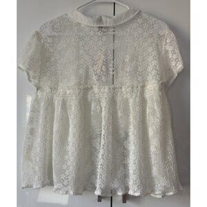 NWT Size L - Maeve Short Sleeve Sheer Lace Babydoll Blouse IVORY (NWT US$ 88)