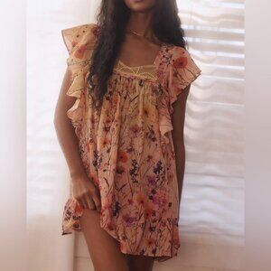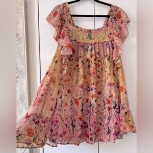 NWT Size S - Anthropologie 100% Cotton Floral Mini Dress (Adjustable armpit tie)