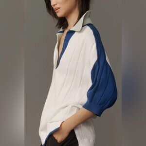 NWT Size S (P2P 26") -Maeve Collared Cotton Rugby Sweater White (NWT US$ 128)