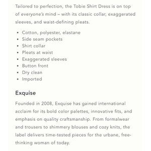 Tailored to perfection, the Tobie Shirt Dress is on top of everyone’s mind – with its classic collar, exaggerated sleeves, and waist-defining pleats.