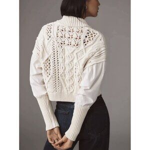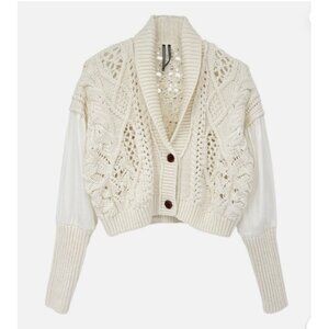 NWT Size XS - Anthropologie Balloon-Sleeve Twofer Cable-Knit Cardigan Sweater