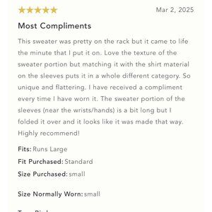 * Sweater: 38% recycled cotton, 38% recycled polyester, 15% cotton, 8% nylon, 1% elastane