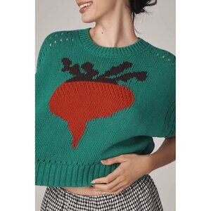 NWT Size XS -Anthropologie Maeve Short Sleeve Turnip Veggie Motif Sweater
