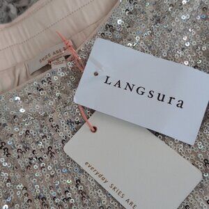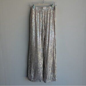 NWT Skies are Blue sequin silver sequin pants with nude base