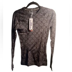 NWT Smartwool Black pattern Classic Thermal Merino Base Layer Crewneck LS top S