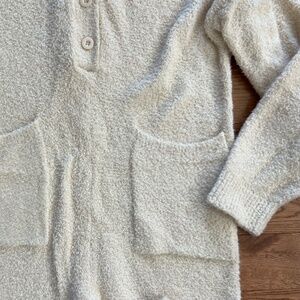 This jumpsuit has pockets and functional buttons.
