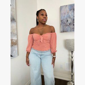 (NWT) Smocked Keyhole Off-Shoulder Top - Salmon